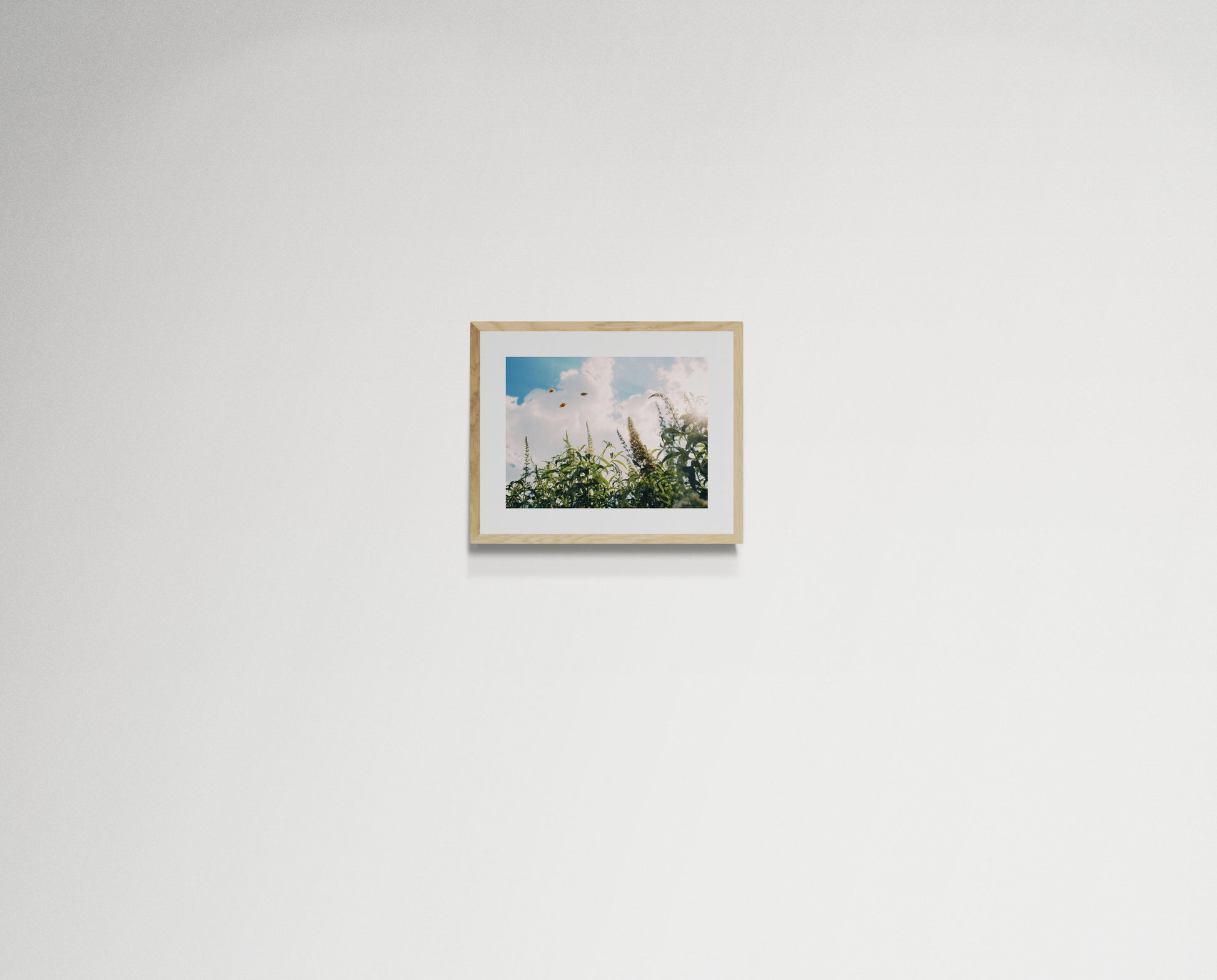Nos œuvres sont proposées avec une bordure intérieure, et peuvent être encadrées dans nos finitions haut de gamme : chêne naturel, noir mat ou blanc épuré.